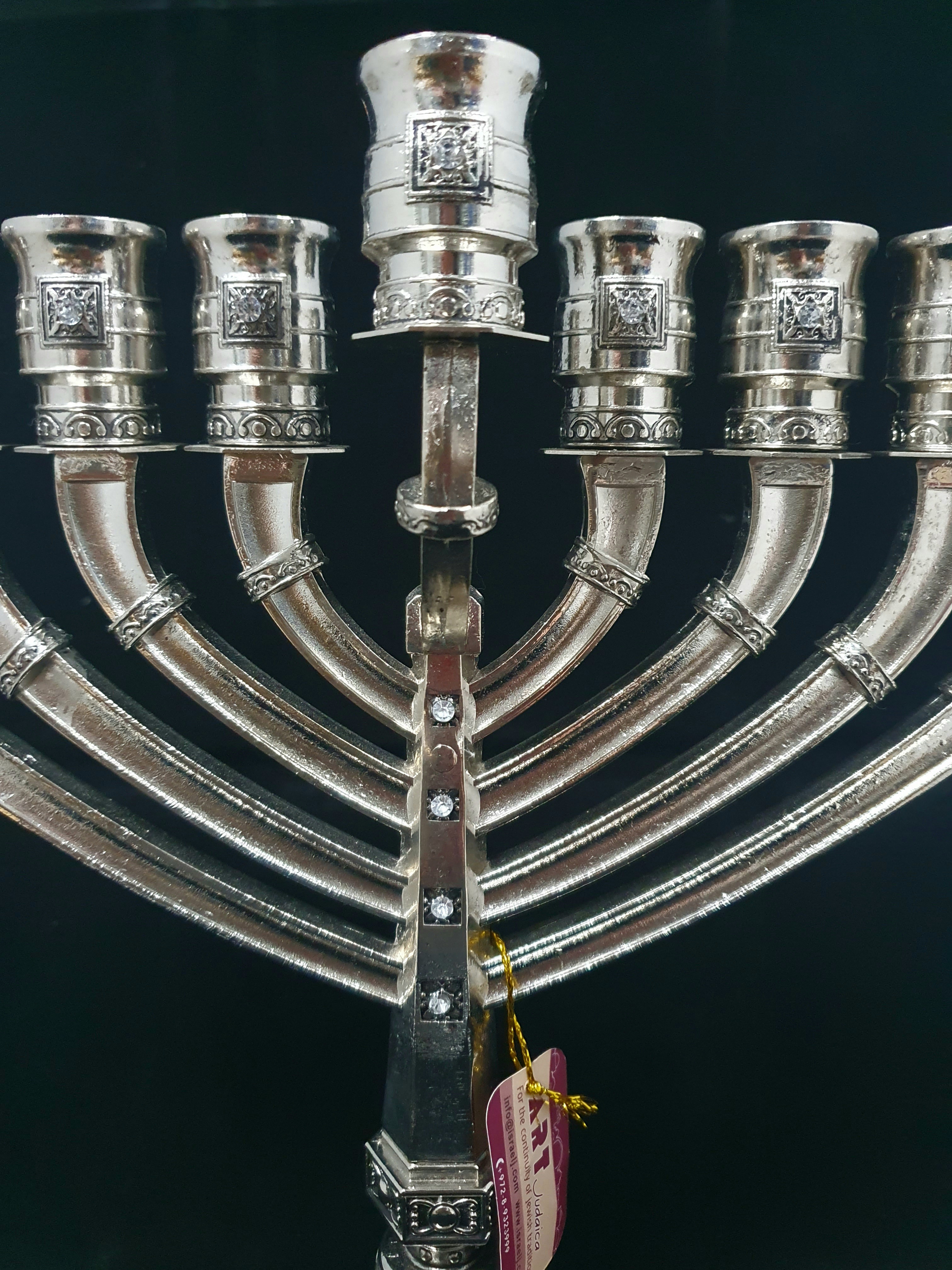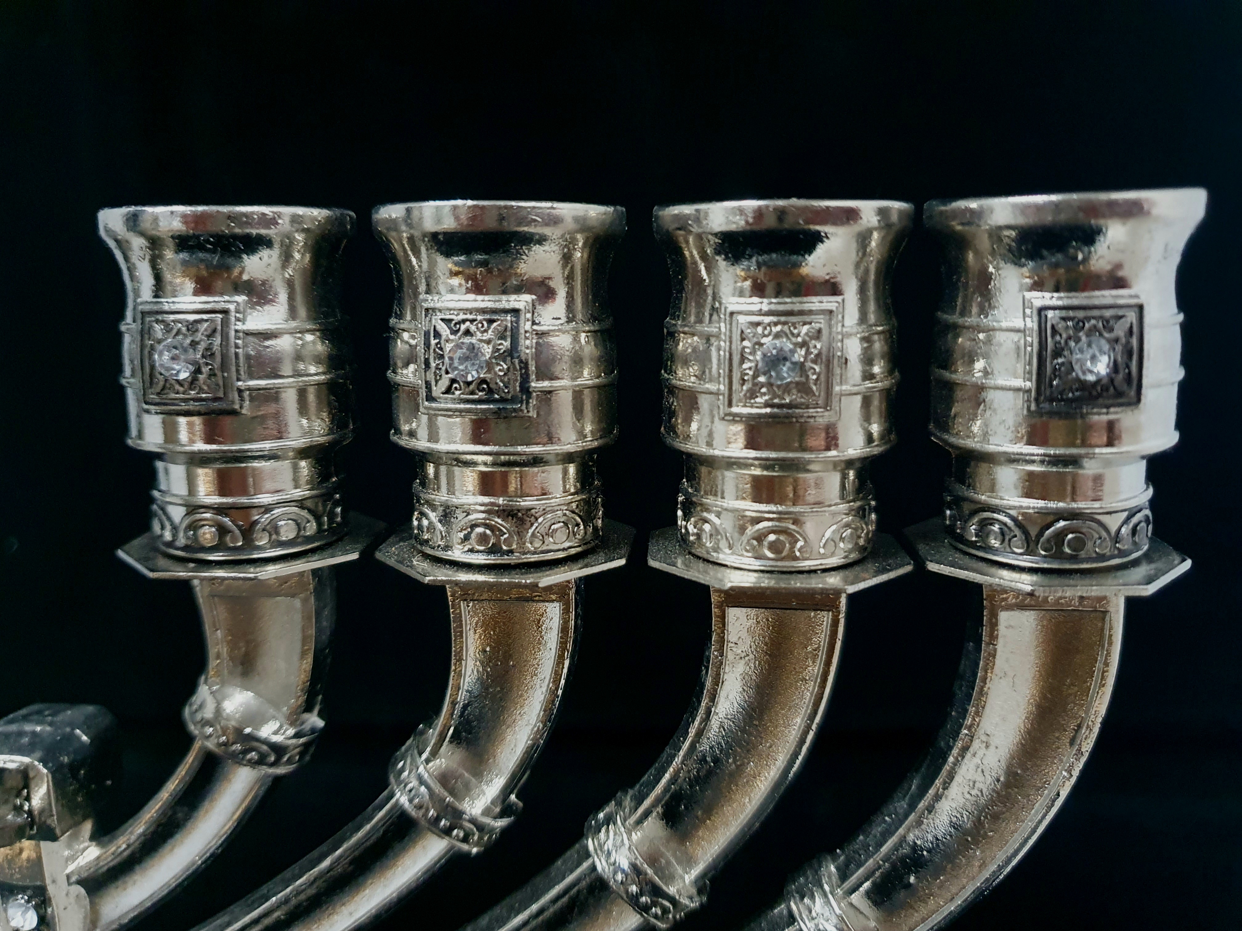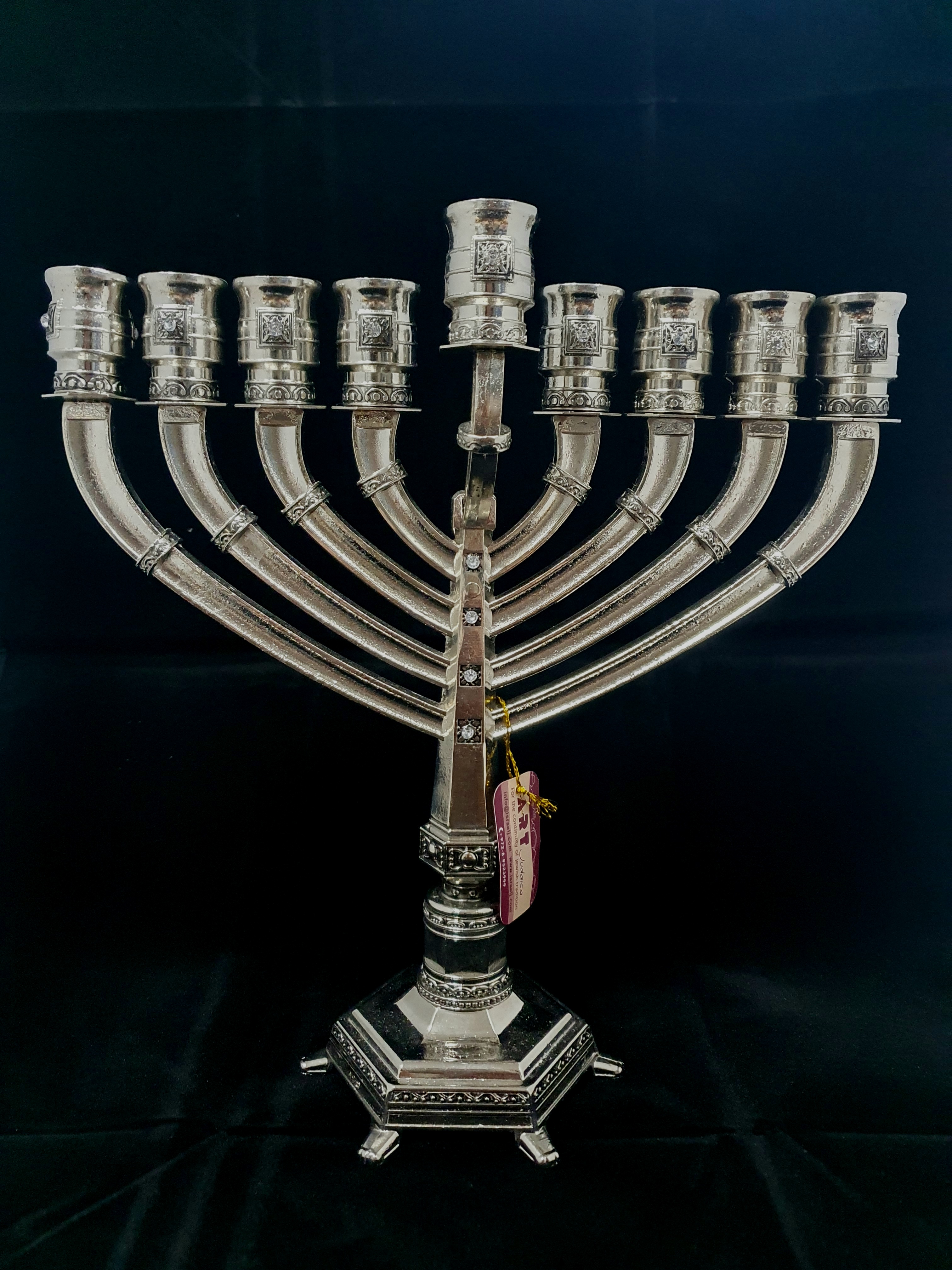 Elegante Chanukkia mit Kerzeneinsätzen (Durchmesser ca. 19 mm.