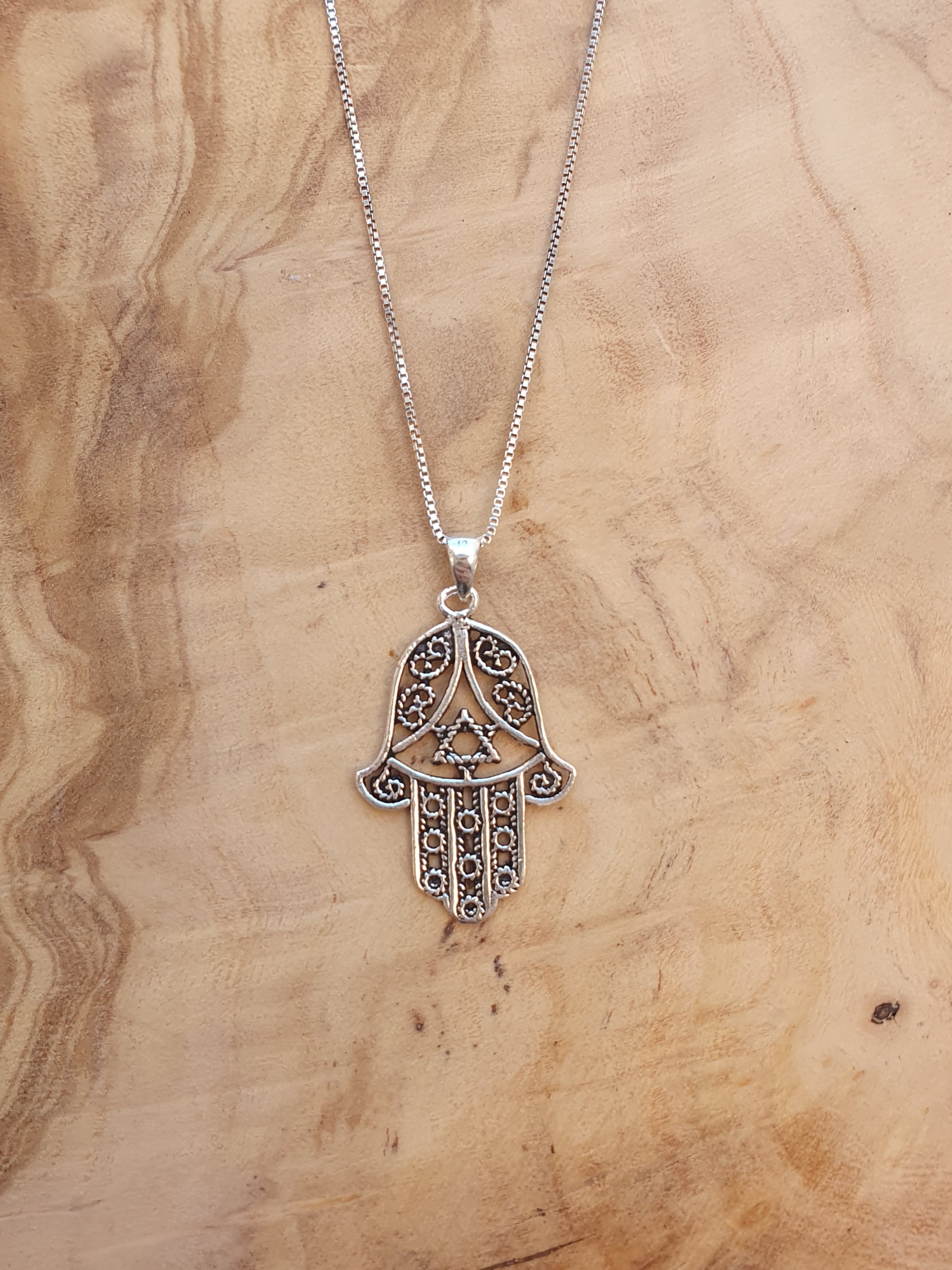 Hochwertige 925 Sterling Silber Kette mit einem filigran gearbeiteten Chamsa Anhänger