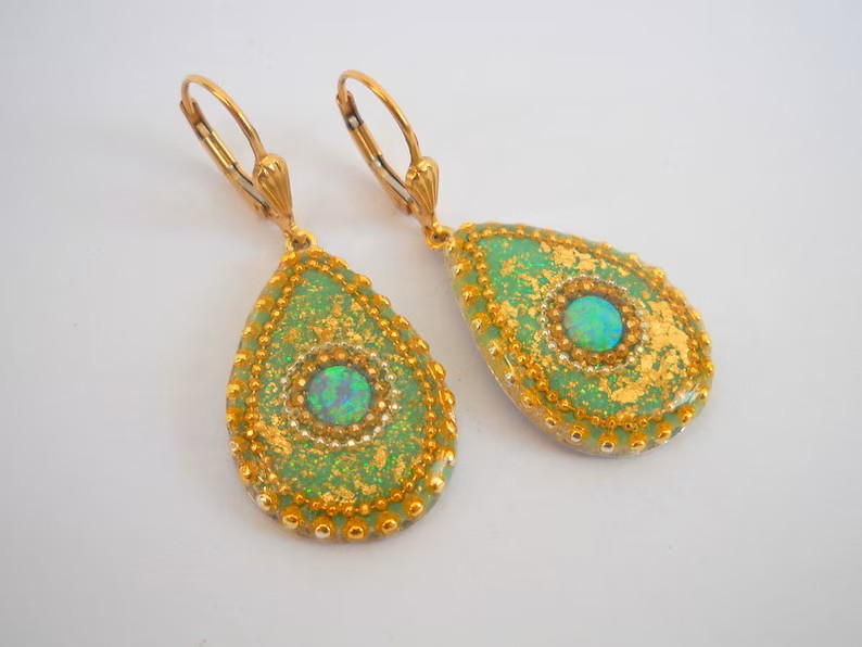 Türkis Opal Stein set in aqua-grünen Hintergrund mit Goldfolie verziert (Blattgold).