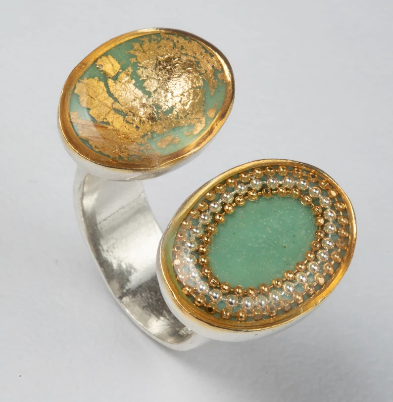 Dieser Boho-Ring ist ein Hila Welner Original-Design aus vergoldetem Messing und mit Harz veredelt.